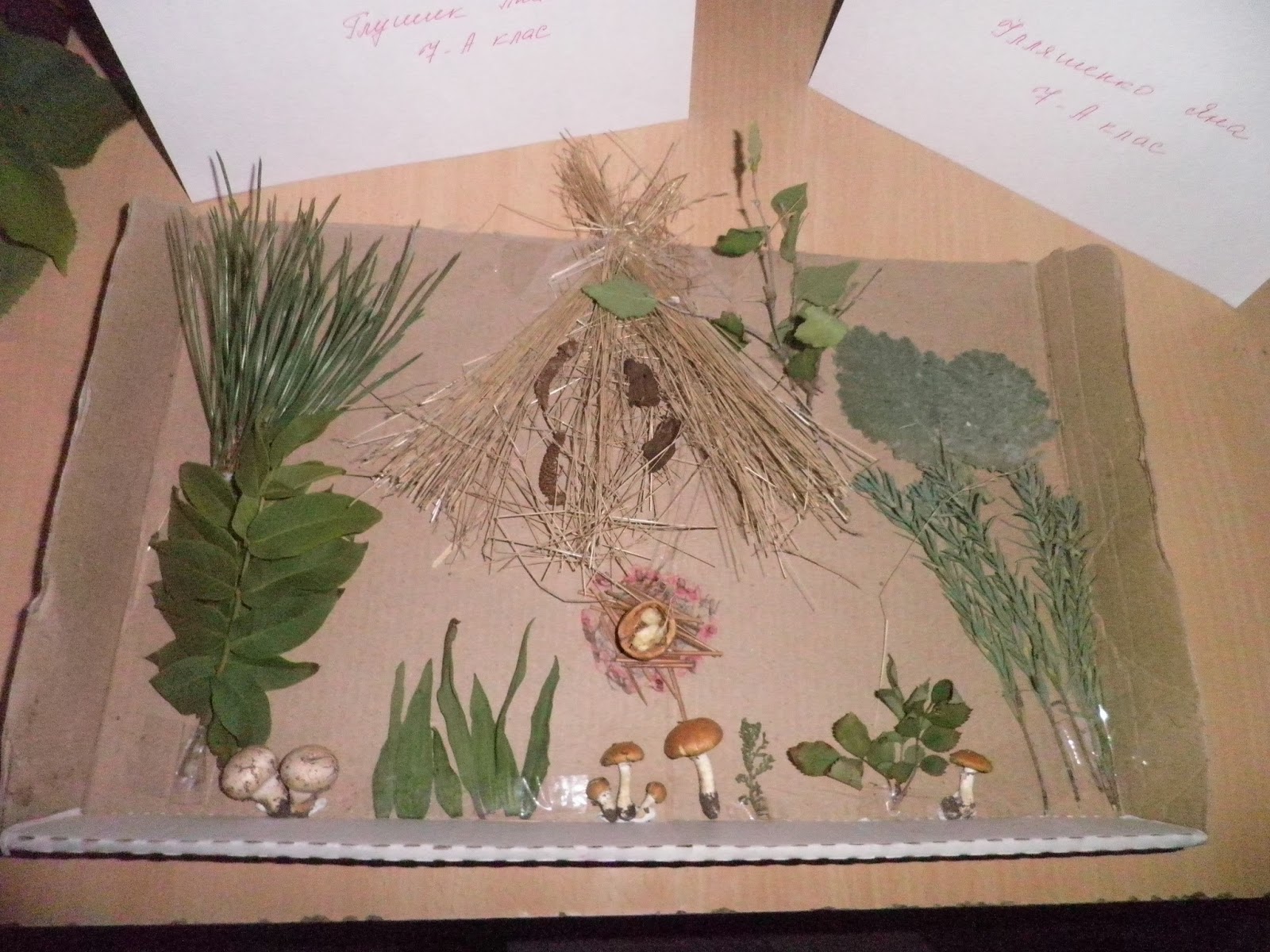 Картини з природнього матеріалу, знайденого під час походів , презентував Онищенко Павло, учень 11-Б класу.