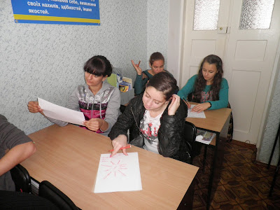 Лілія Володимирівна на початку заняття запропонувала цікаву гру "Налаштування на співпрацю". Вона попросила підняти вгору руки : з відкритими долонями або зажатими в кулак, або їх схрестивши.