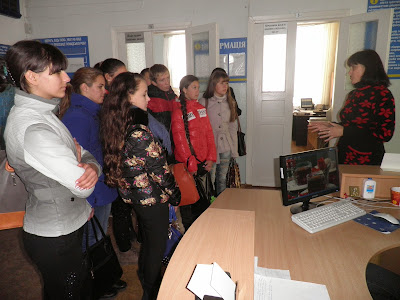 Метою нашої екскурсії було ознайомлення учасників ШКП із принципами організації діяльності служби зайнятості, послугами, що надаються центром зайнятості, технологією обслуговування незайнятого населення, а також інформацією щодо актуальності окремих професій на нашому ринку праці.