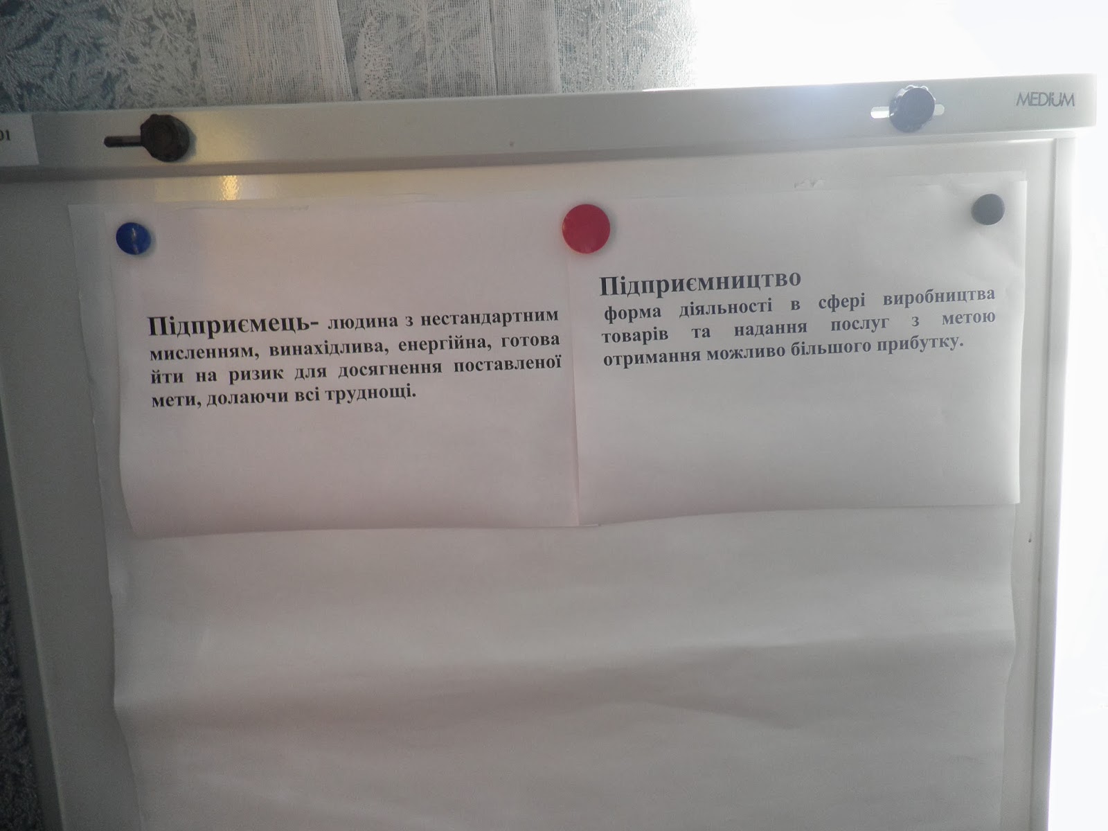 Наступний етап заняття - ще раз пригадали визначення понять "підприємець" і "підприємництво" та познайомились з історією їх виникнення.