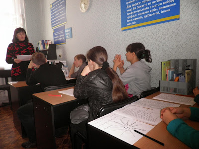 Далі нас запросили до сектору активної підтримки безробітних, спеціалісти якого залучають безробітних до профорієнтації, профнавчання, організації власного бізнесу та до участі у семінарах з техніки пошуку роботи тощо.