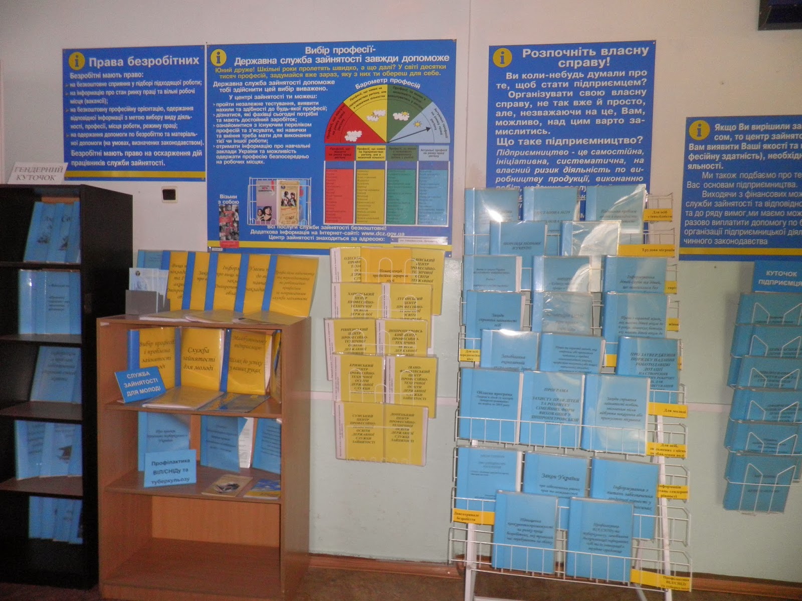 Людина, яка шукає роботу, особливо зацікавлена в отриманні інформації про наявні вакансії. У центрі зайнятості таку інформацію особа може знайти на великих інформаційних стендах або одразу скористатися тачскріном — спеціальним комп’ютером, який швидко й зручно за заданими параметрами повідомить інформацію, яка сприятиме у пошуку роботи або працівників.