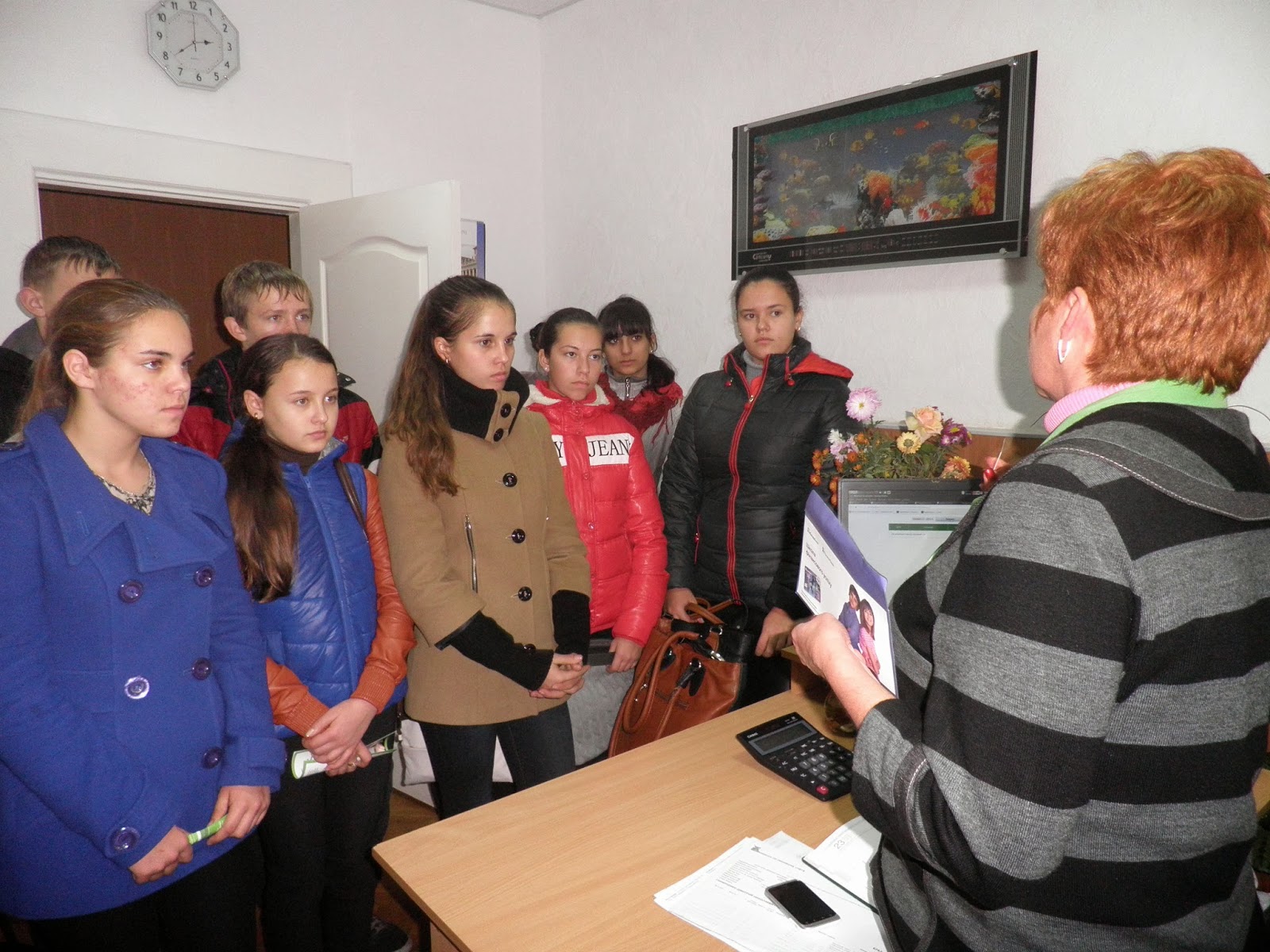 Членів клубу привітно зустріла гарна жінка, керівник відділення банку - Проц У. Б., яка й провела екскурсію, розповіла про види банківських послуг, про види вкладів клієнтів.