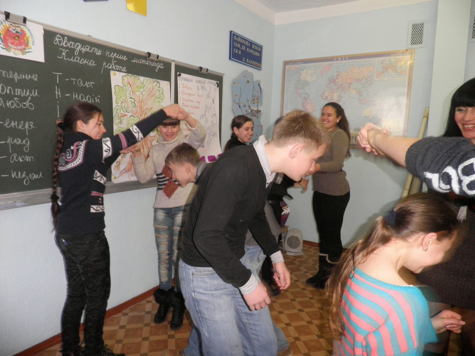 Руханка «Тостери-грінки». Учасники об’єднуються в трійки. Двоє беруться за руки і стають тостером. Один заходить всередину. Він – грінка. За командою «тостер» тостери міняються місцями. За командою: «грінка» грінки міняються місцями. За командою «грінка готова» грінки підстрибують на місці.