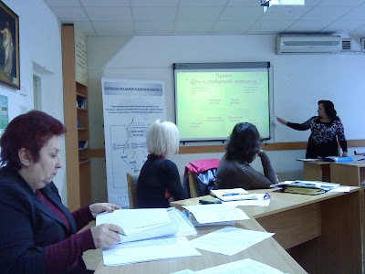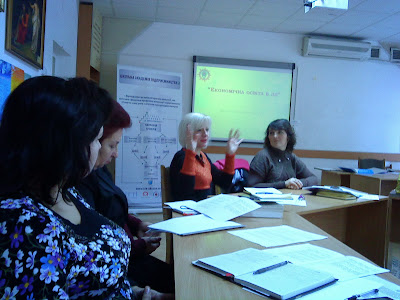 Глазиріна Євгена Миколайовича - нового асистента обласного координатора міжнародного проекту ""Шкільна академія підприємництва 2", головного консультанта з економічних питань ШКП "БізнесОК" ліцею природничо-наукового навчання м. Жовті води, який розкрив зміст питання "Практичний аспект економічної освіти підприємницьких компетентностей учнівської молоді".